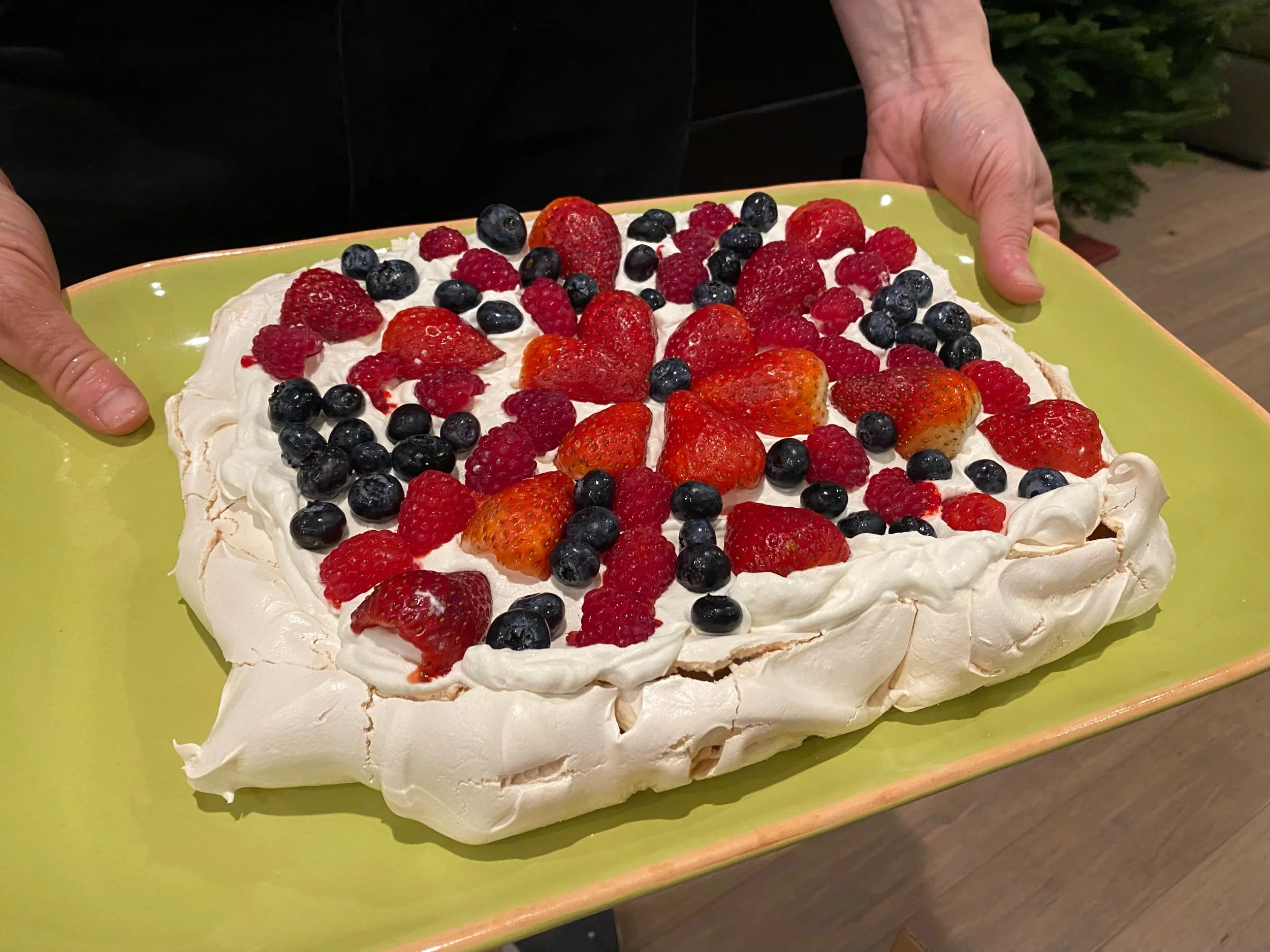 A Pavlova, which is a huge meringue served with whipped cream and fruit on top. It’s like eating a cloud. It’s amazing.