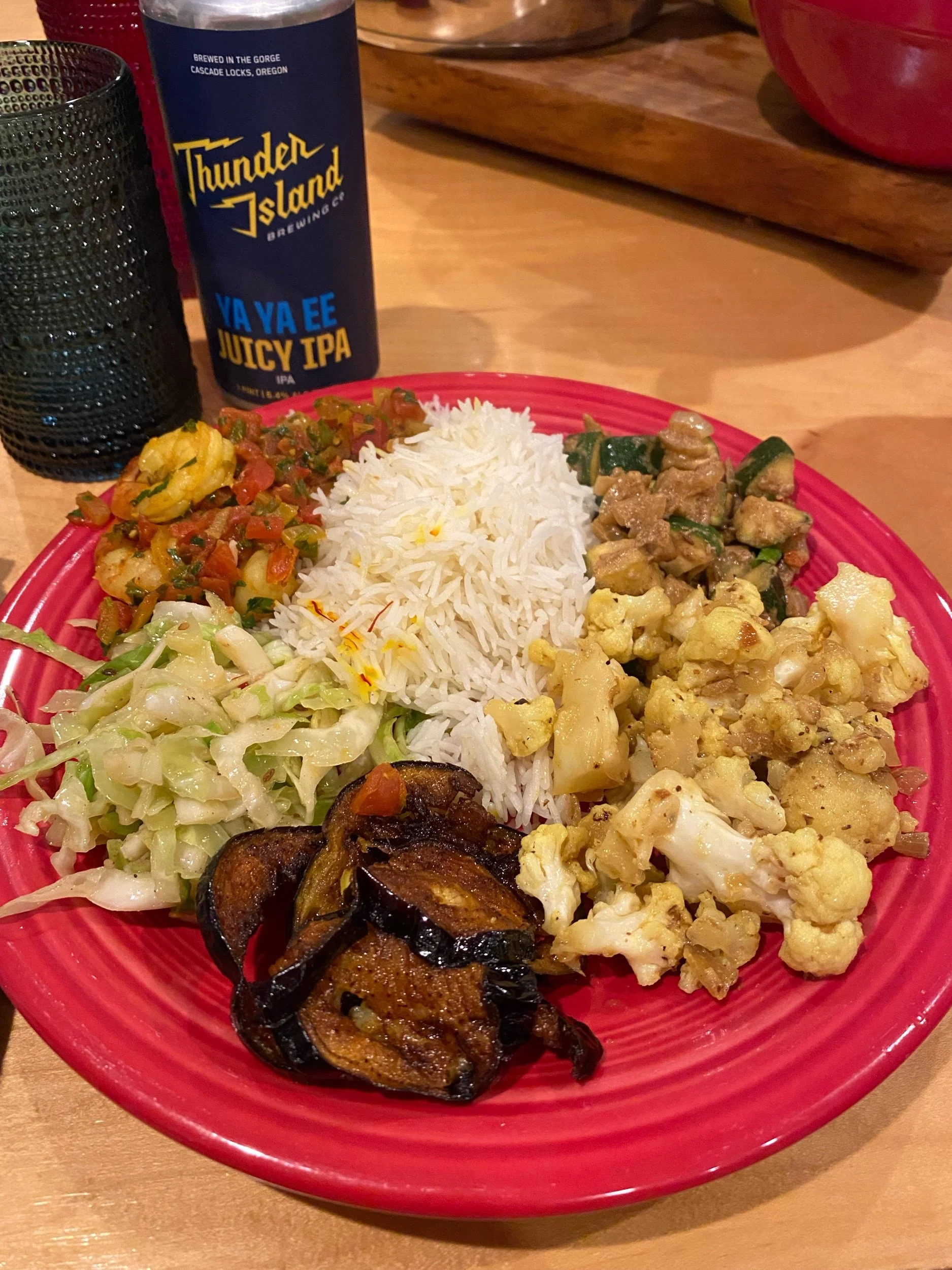 Cabbage with garlic and Bengali spices: this recipe called for ghee, which we bought because we don’t usually stock. It tasted great.