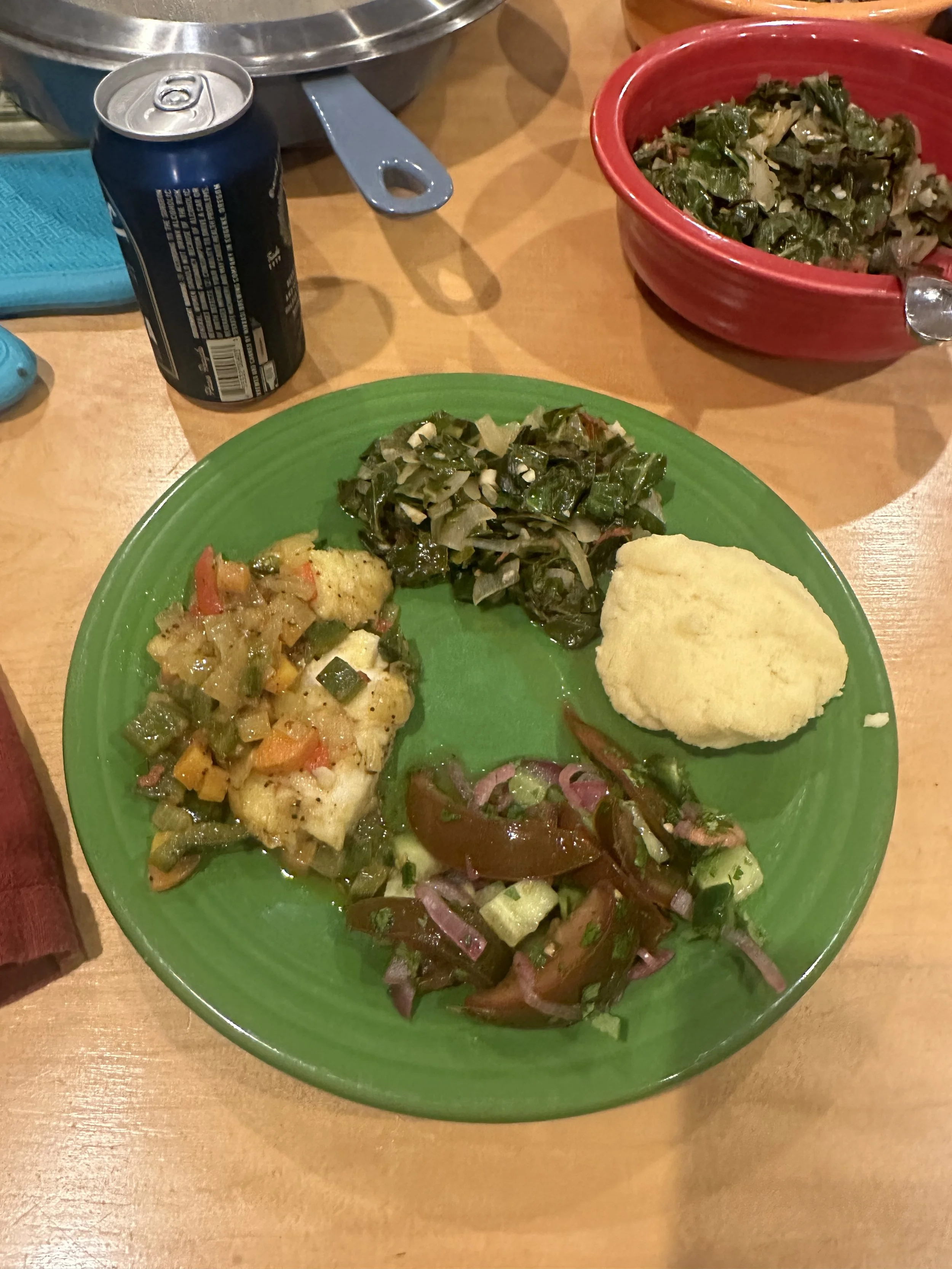 Jan 26 Jan 26 #105 Malawi Jess Zimbabwe continent: Africa, member: UN, Top 20 low CO2 per capita For Malawi night, we made: Kachumbari, a tomato and onion salad;Nsima, cornmeal patties; Ndiwo, a relish of cooked greens; and Chambo, a fish dish with a pepper gravy. Leave a comment
